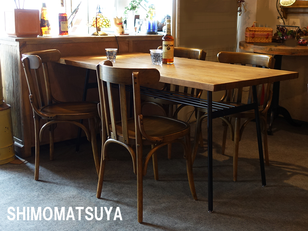 脚はインダストリアルな雰囲気を持ったアイアンに棚を付け、