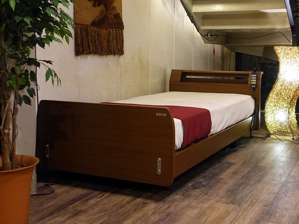 家具調にこだわった本格的な木製電動ベッド。