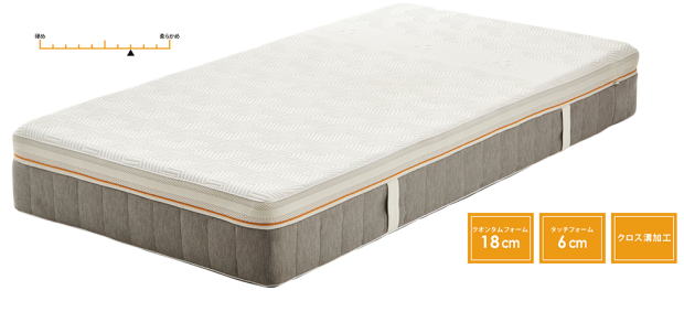 Touch foam タッチフォーム 柔らかく、しなやかさのあるタッチフォームは、重さや圧力の分散に特化しており、 身体の形や動きに合わせてぴったりとフィットし、負担を集中させることなく 快眠へと導くフォーム。 |