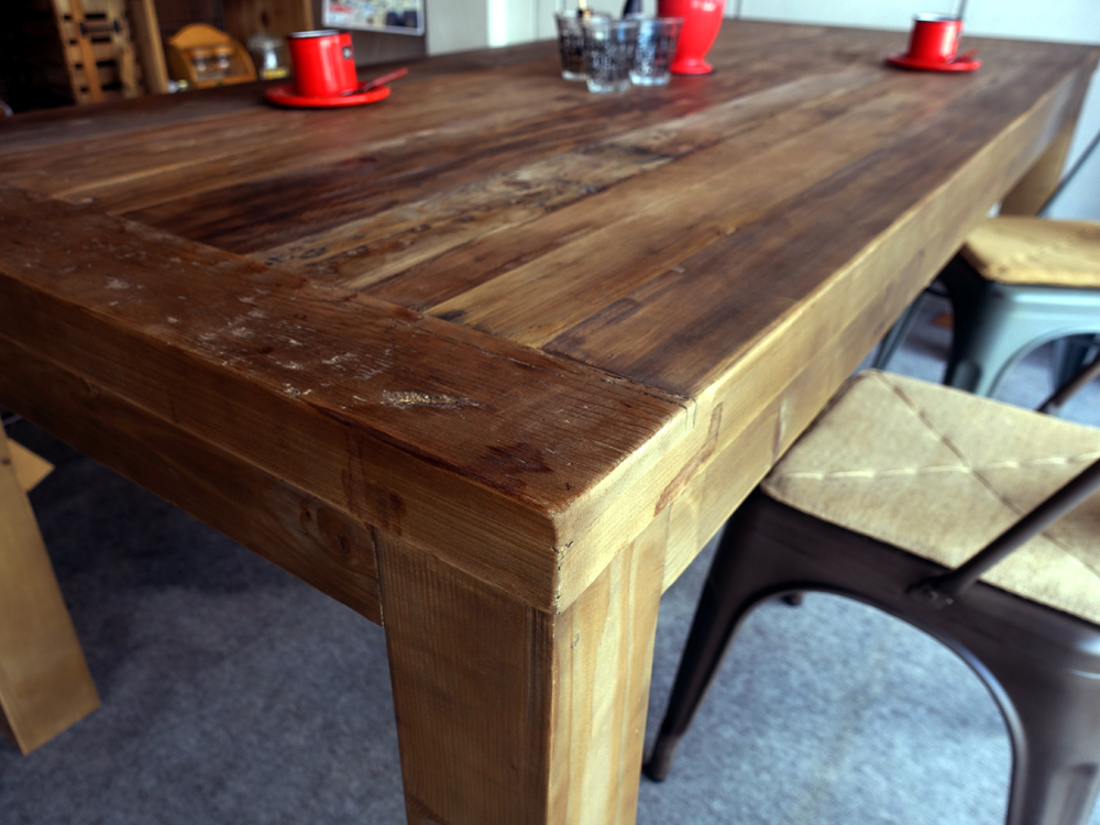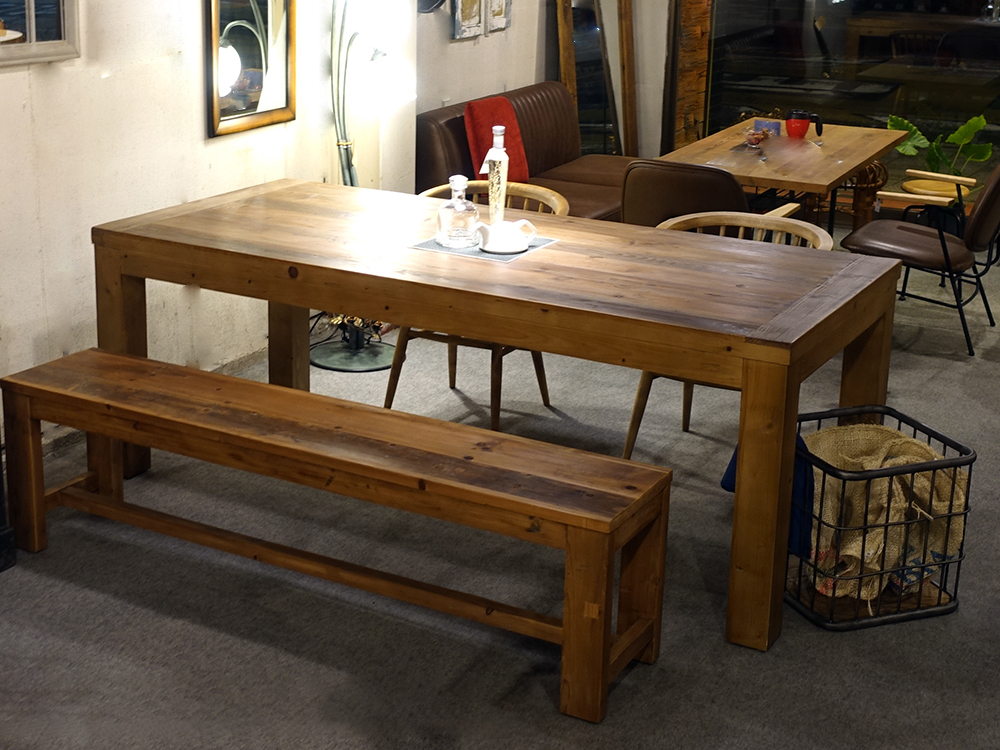 古材の持つ重厚感や独特の雰囲気を存分に楽しむことができるシンプルなテーブルです。