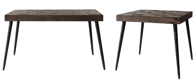 ニレ古材を組み合わせ、風合いを生かして作った天板が特長です。