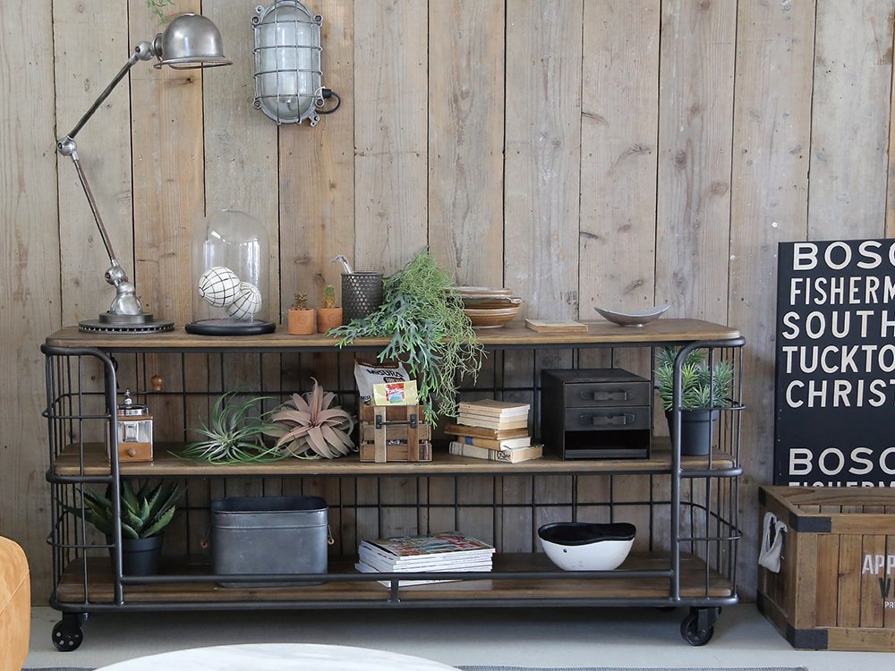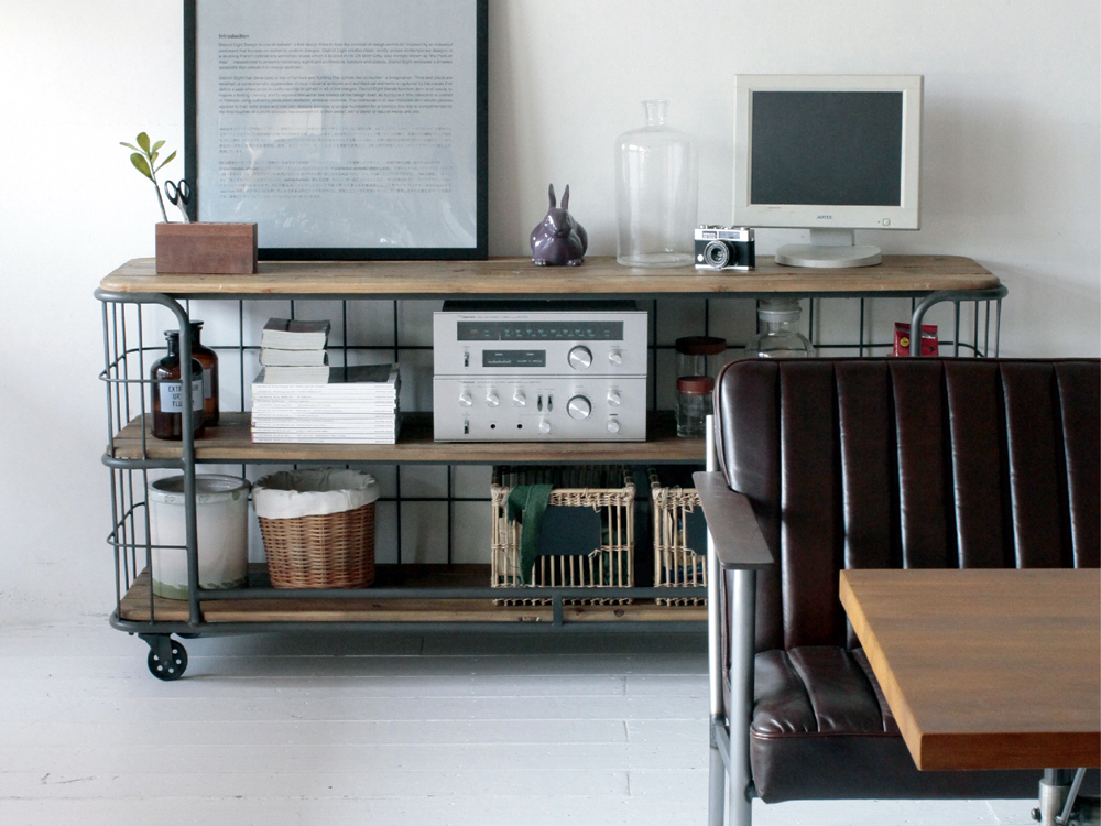 古材とスチールを組み合わせてインダストリアルな雰囲気に仕上げました。
