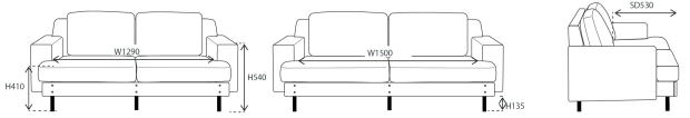 Basque Sofa 3P 幅1900 奥行870 高さ780 座面高410 PLT112 price 127,600yen(税込) CANVAS price 119,900yen(税込) 送料無料 |