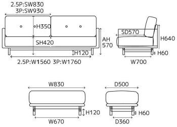 Boreas Sofa 2.5P 幅1800 奥行840 高さ770 座面高420 price 121,000yen(税込) 送料無料 |